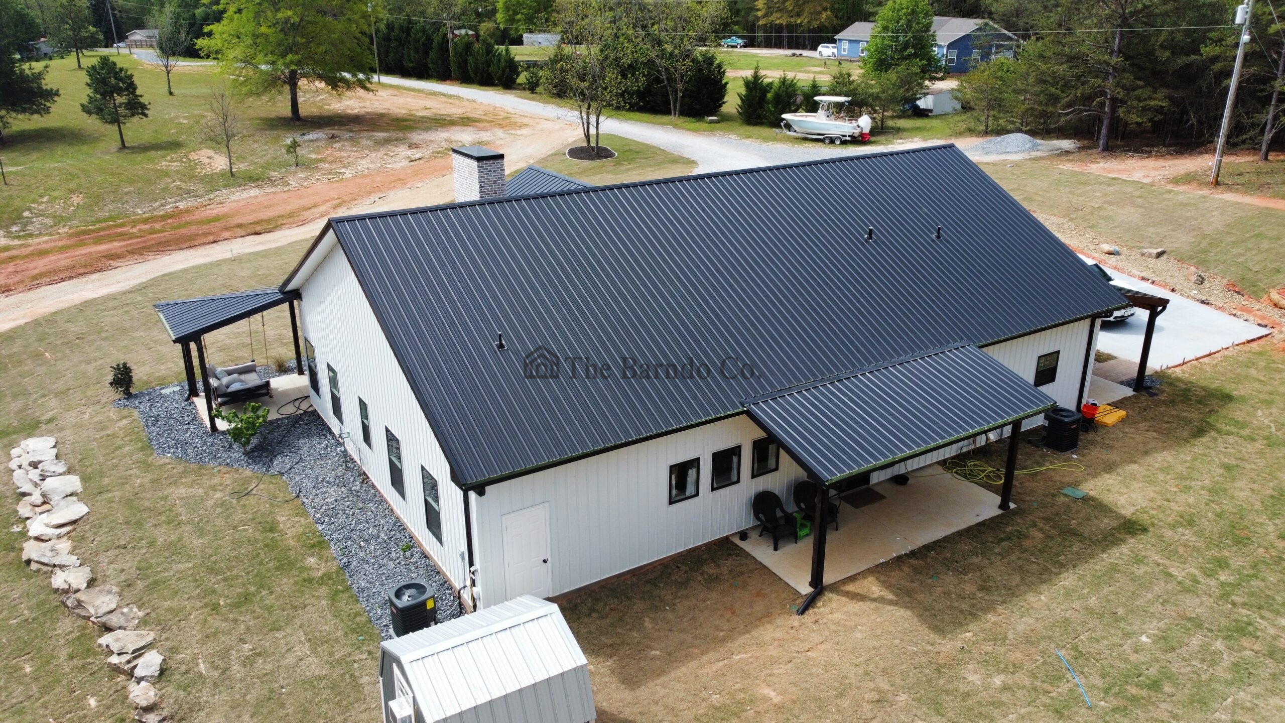 - Standard 29-gauge steel roofing and siding with tough-rib panels, color-matched fasteners, and a clean, seamless finish