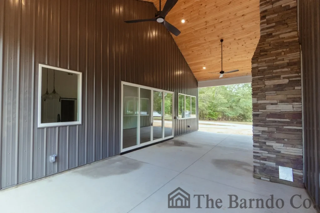 - Standard 29-gauge steel roofing and siding with tough-rib panels, color-matched fasteners, and a clean, seamless finish