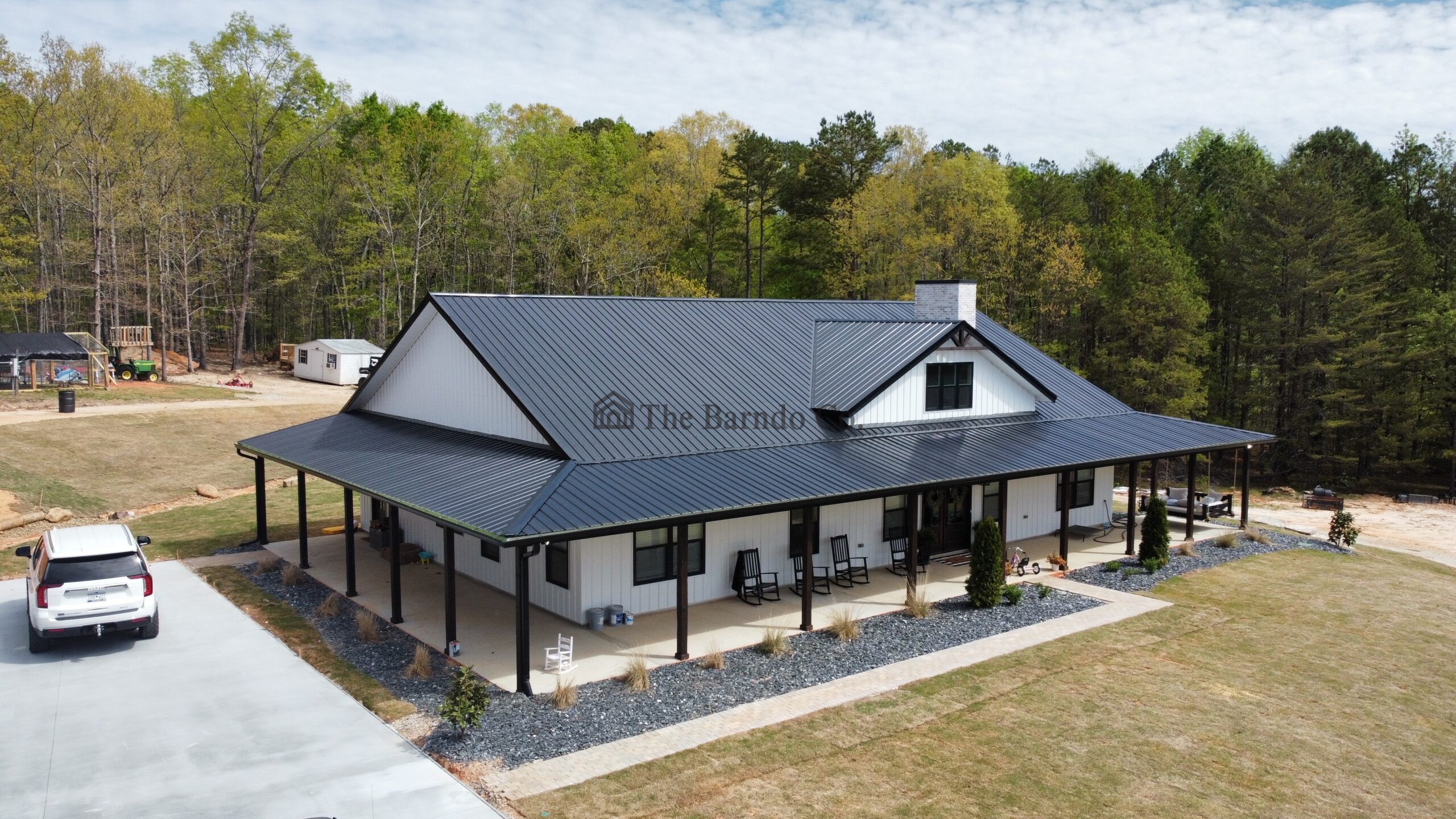 - Standard 29-gauge steel roofing and siding with tough-rib panels, color-matched fasteners, and a clean, seamless finish